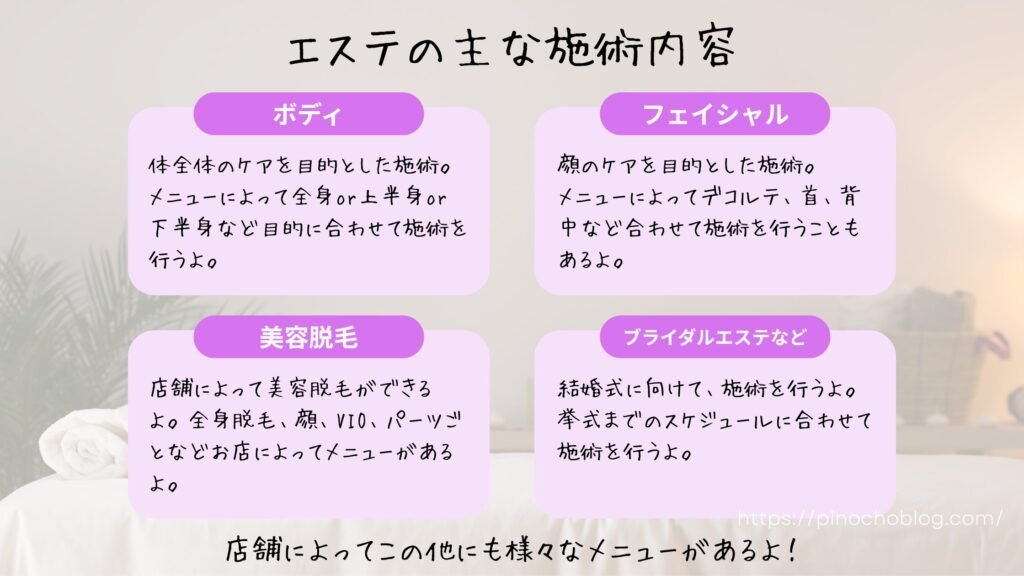 この記事では、そんな想いをサポートするために、エステの基本的な目的やフェイシャル・ボディといった主なコースの種類をわかりやすくご紹介します。